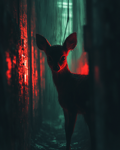 Bambi the reckoning, Animal Horror, scary forest Background, scary deer, slasher Horror, insane Art, 4K, dramatic Lights, dramatic Horror, hyperrealistic, high quality, high details --ar 4:5 --s 250 --v 6.1