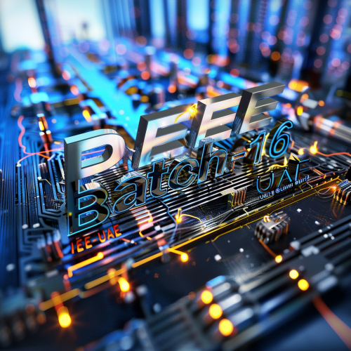 make a slogan as "PEE Batch-16 IIEE-UAE" in a electrical engineering concepts backround and realistic 3D lettering --s 50