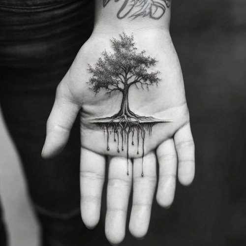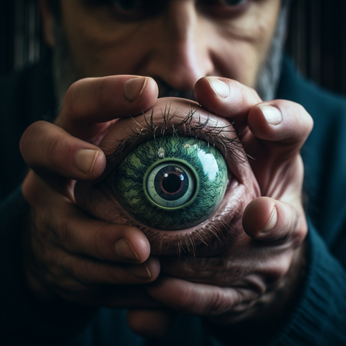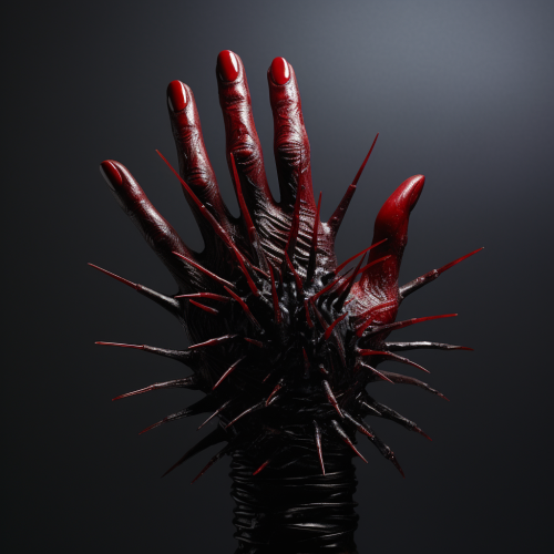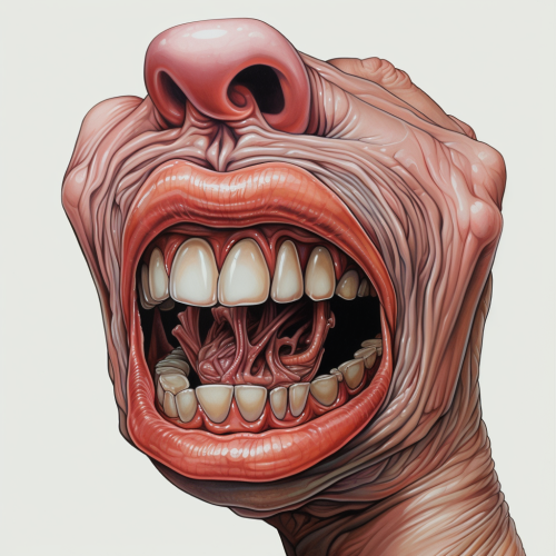 cartoon hand, high detail, mouth and tongue in the palm of the hand.