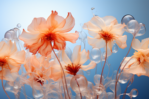 background image digital floral flowers as data structures, background, in the style of ethereal minimalism, translucent water, flowing silhouettes, realistic color palette, colorful moebius, white background, digitally enhanced --style raw --ar 3:2 --v 5.2 --s 500