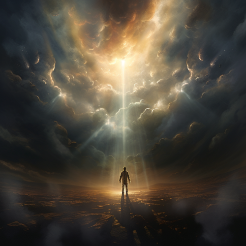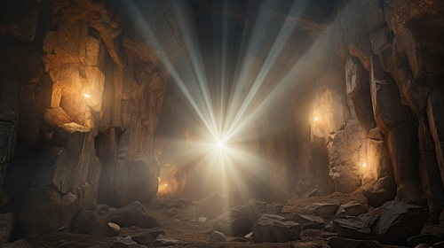 Create a realistic image of a hand reaching out toward a small, bright light in the center of the frame. The background is dark and shadowy, with the light radiating soft beams in all directions, creating a glowing halo effect around the hand. The hand is partially illuminated by the light, with subtle shadows adding depth and dimension. The overall mood should feel mysterious, warm, and slightly ethereal, as if the person is reaching for something hopeful or otherworldly