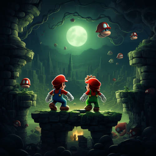 Scene 4: The Journey Through Challenges Mario and Luigi faced countless obstacles along the way, from treacherous chasms to shadowy creatures. With faith and courage, they used their new skills to overcome each challenge, strengthening their friendship and mutual trust in the process.
