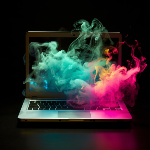 experimental photography, smoke coming out of a laptop, backlight, experimental light, neon and lasers, epic detail photography
