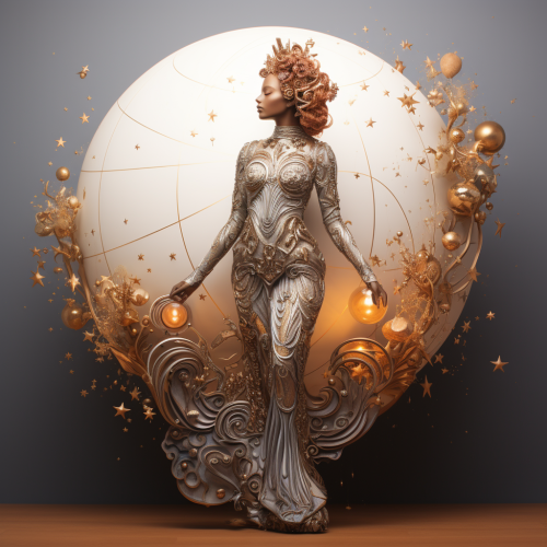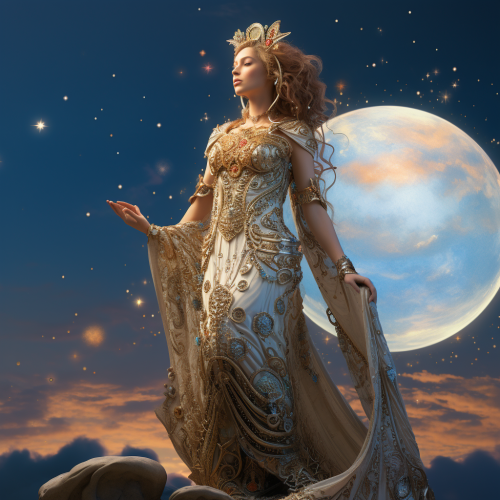 Celestial Fantasy, A Goddess Mother Space , full body view, Photorealistic, German Beauty, Side view, Far View
