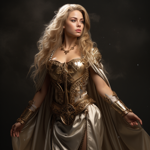 Celestial A warrior Princess woman with blond hair , full body view, Photorealistic, German Beauty, Side view