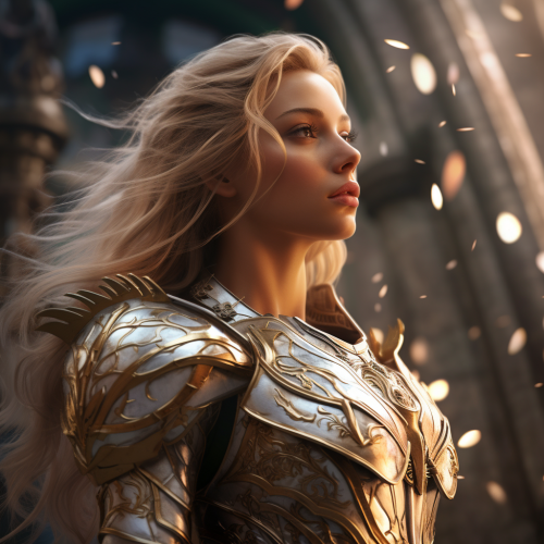 Celestial A warrior Princess woman with blond hair , full body view, Photorealistic, German Beauty, Side view, Far View