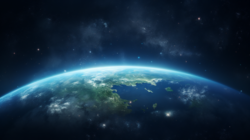 picture of earth, semi-sized, background should be filled with stars. --ar 16:9