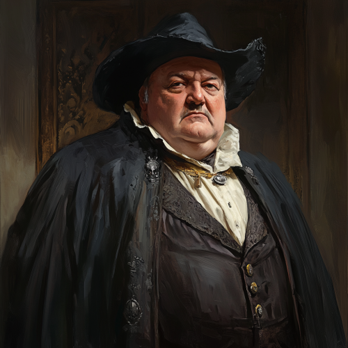 dnd ravenloft barovia renaissance gothic, character portrait, chubby older slavic gentleman, looks a bit like Winston Churchill, dressed in fine renaissance scholar robes and hat, renaissance oil painting style