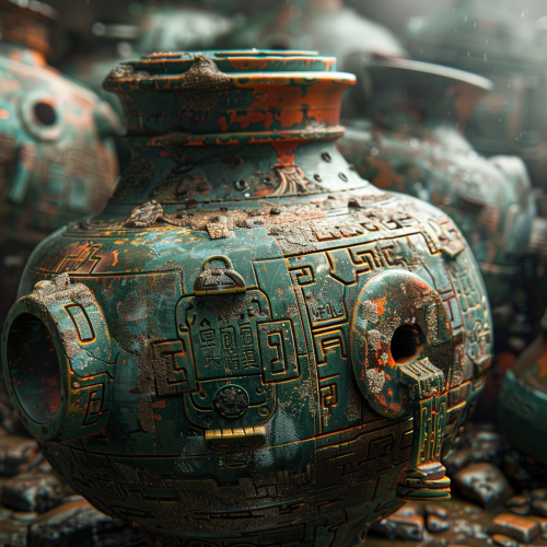 ancient chinese artifacts, lost artifacts, southeastasian, dystopian, out of this world, photorealistic, hyperrealistic, --v 6.0