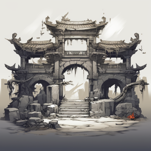 orthographic background sketch environment design broken artifacts ancient chinese temple