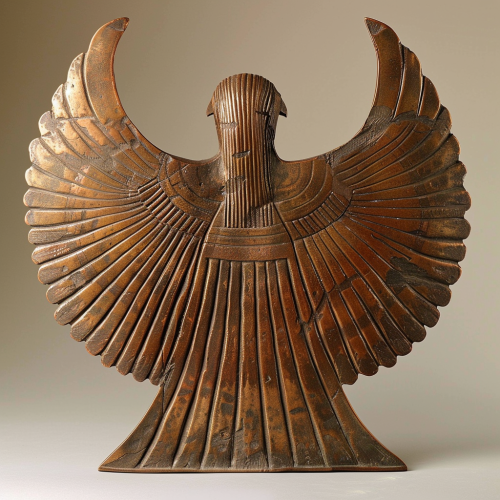 a copper bronze plate that looks like the wings of the Egyptian god Isis, wings are straight, ultra realistic --v 6.0