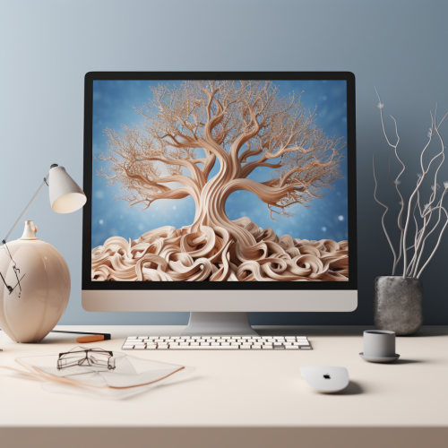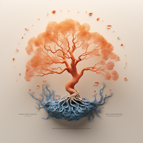 Card of a dying tree of life for a hypnotherapist website, tree without leaf, warm atmosphere, displayed in small grid css table aligned, light orange and blue color, white background, no text::2, design, ux/ui, ux, ui, 4k, detailed, web view --no face, grid misalignment