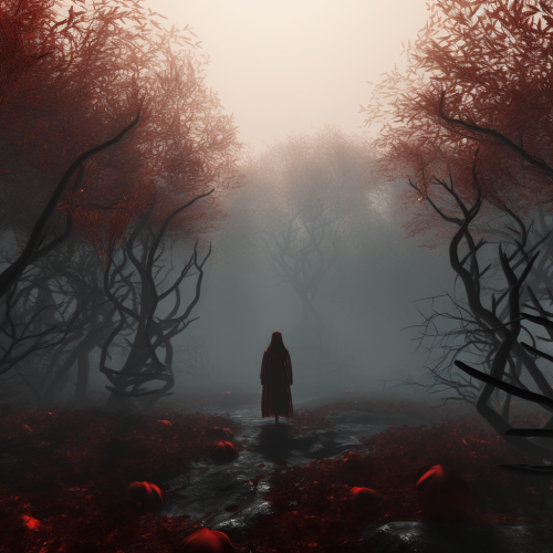 A full-length fairy tale character, from a fantasy world, in his fairy tale atmosphere, against a fairy tale forest background, 10% fog, 5% rossa, render 16k,helowen --style raw