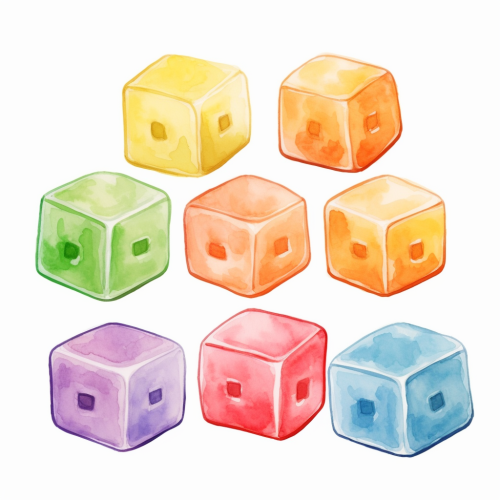 Simple flat vector of squared chewey candies. Watercolors. USe pastel halloween colors. On a white background --no shadows