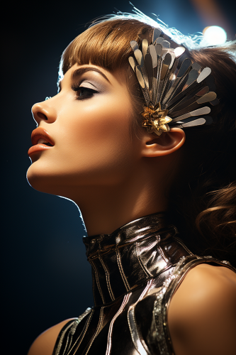 a shocking photograph of a beautiful female backup singer for roxy music, in the style of progressive rhythmic trance, very confident, dream-like photography, beautiful details, natural light --s 350 --ar 2:3