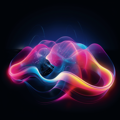 An album cover for a music track called gentle, use neon colours and soft bubbles of light, music symbol burst, neon stripes, neon streaks, neon swirls