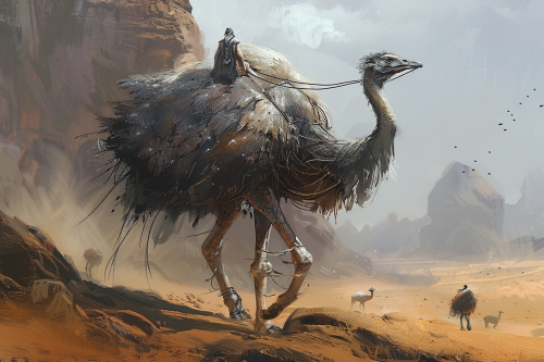 an alien creature that people can ride on, similar to an ostrich. --ar 3:2