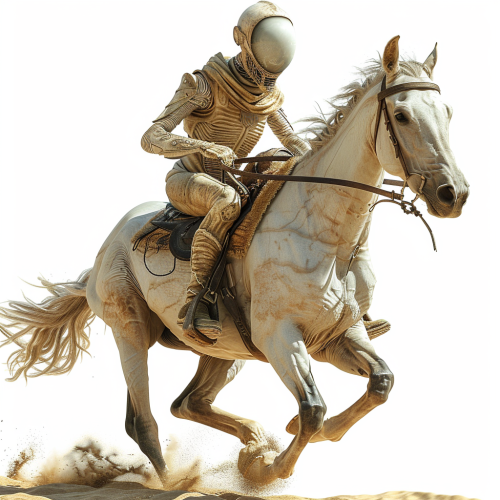 an alien riding a running horse, dmt , isolated on white background --s 250 --v 6.0