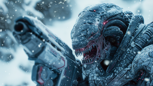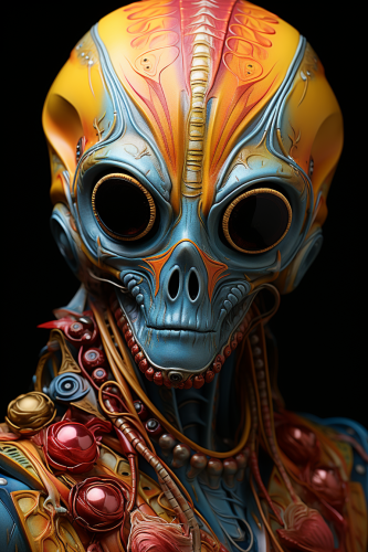 a hyper realistic alien , very colorful, scary , macabre , evil , vibrant , full length portrait, full body shot , from head to toes , extremely colorful and detailed, --ar 2:3 --s 750 --v 5.2