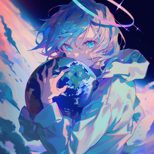 A surreal creature standing in an alien landscape. The creature has a humanoid shape with colored tentacles wrapping around its body. The head is decorated with glasses and a fancy headdress. The skin is almost synthetic, contrasting with the tones of the tentacles and surroundings. The sky is shown in the background. It’s a joy to stand in front of a majestic planet that hangs in the sky, tentacles crumbling smoothly around it, mutely alive. Its head is topped with a drop, which resembles a flower as it gradually changes shape. The overall atmosphere is a mixture of science fiction and fantasy with a touch of surrealism and psychedelia.