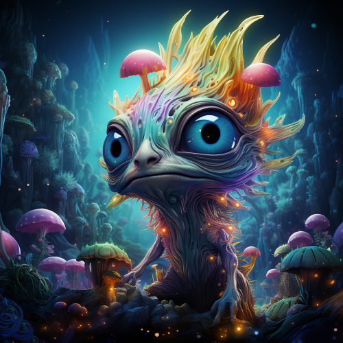 fantasy alien creature funky color effect fantasy background painting --s 250