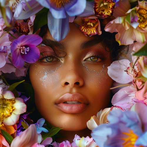 Create a stunning cover photo featuring a picturesque flower garden with a variety of blooming flowers such as roses, tulips, and daisies. The scene should have a natural, vibrant feel, as if captured with an iPhone 14. Include elements like soft, diffused lighting, shallow depth of field, and rich, realistic colors to mimic the high-quality, detailed look of an iPhone 14 photo. The composition should be inviting and visually appealing, perfect for showcasing the beauty of flowers in a fresh, modern way.