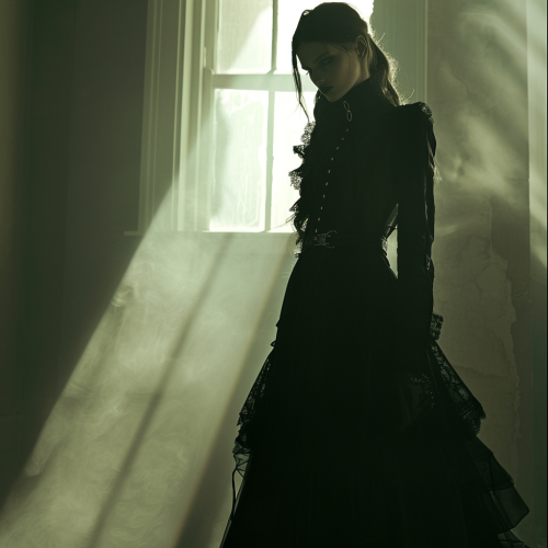 fashion photography, vogue photo style, fashion look, full length, female model wearing Gothic look, Prada style --v 6.0
