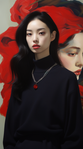 a Korean female model wearing Prada style Cashmere Sweater ;--v 5.2 ; --ar 9:16