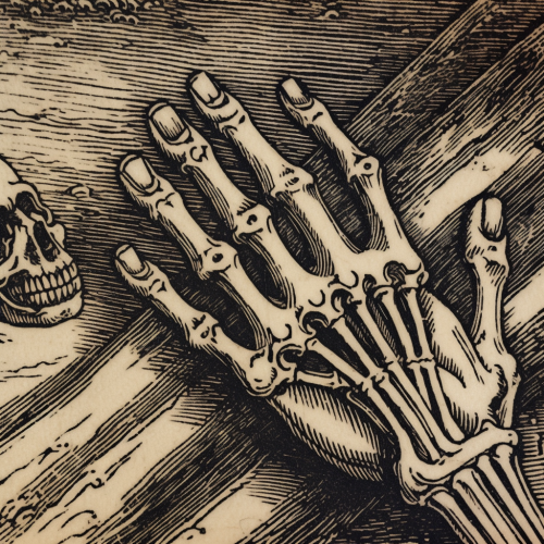 medieval woodcut of a skeleton’s hand reaching out — v 6.0 --v 5.0