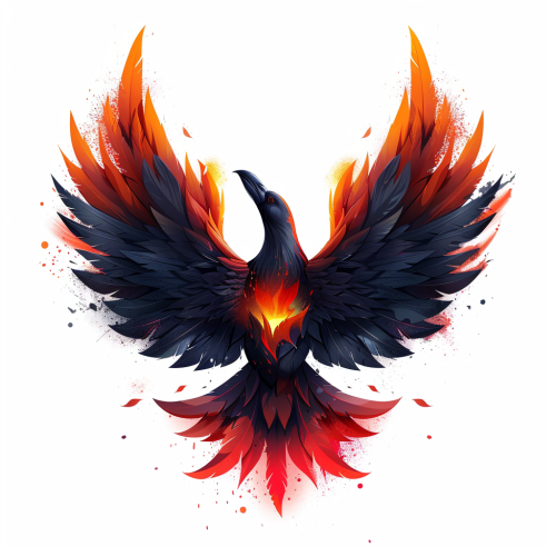 logo of a black raven set ablaze like a phoenix with a transparent white background --s 500