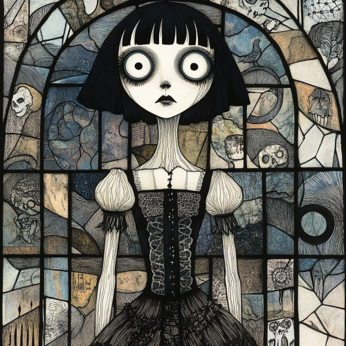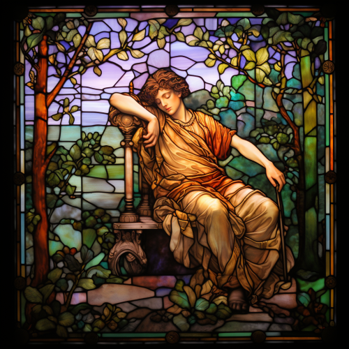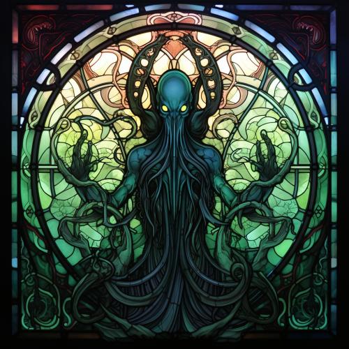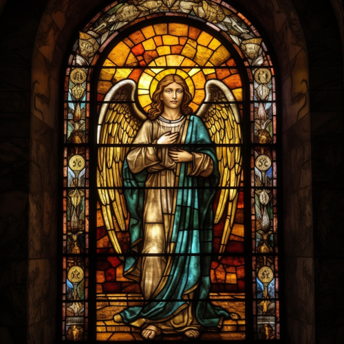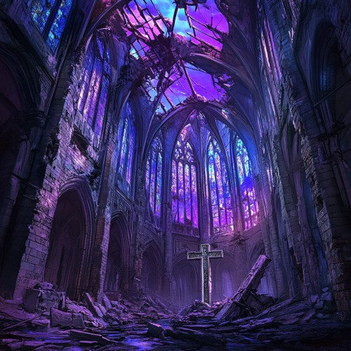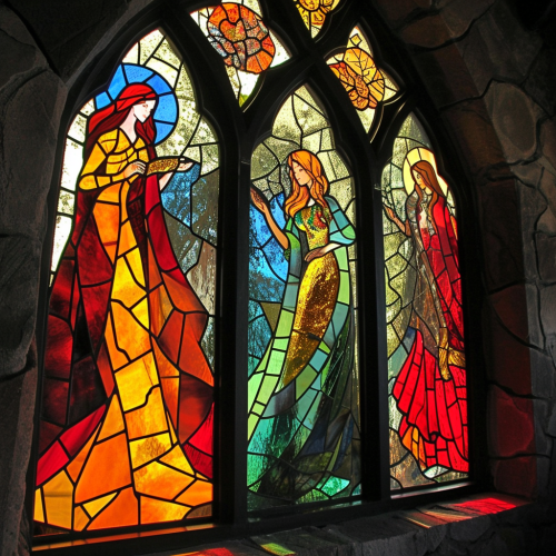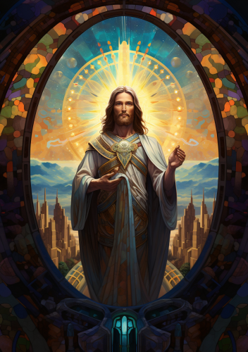 veracity and worship with styled stain glass windows in the cathedral of the cosmos, in the style of colorful gilded oil painting --ar 20:16 --s 210