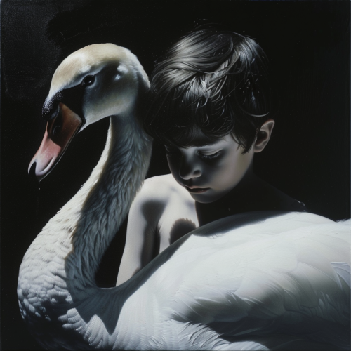Leda and the swan, body-horror as painted by lyssa monk and gottfried helnwein --v 6.0