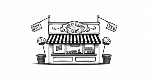 create a flat vector optical illusion logo design in an ink stamped effect of an italian gelateria awning in black ink on white background, art by Banksy, --ar 16:9