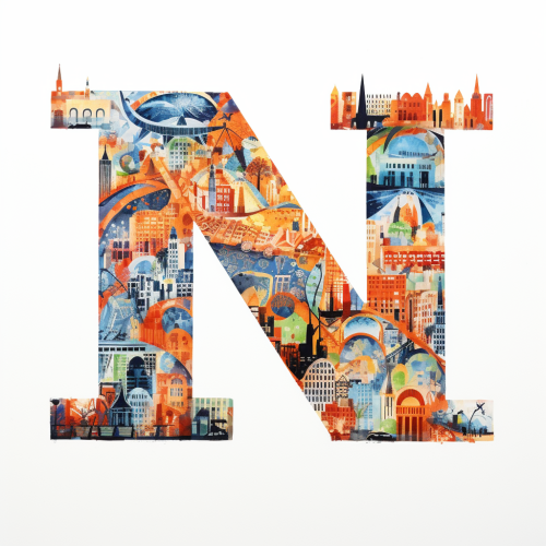 the letter M, made from city scape, Australian indigenous painting, on completely white background