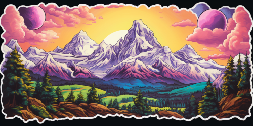 vast mountain scape, style of Gretchen Leggit, hydrascape sticker --ar 16:8