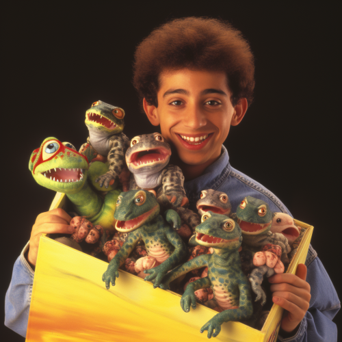 1990s era plush snake toy that gets stuffed with rat plush toys, magazine advertisement with kid smiling while holding plush rat toys, the advertisement shows the packing box with extra plush rat toys --v 5.2