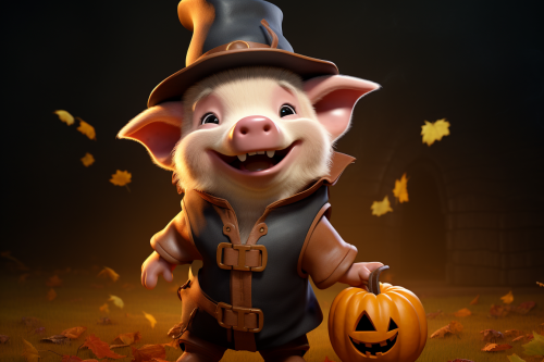 cute pig in halloween costume, character design, stylized, 3d render, blender --ar 3:2