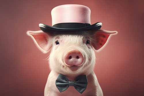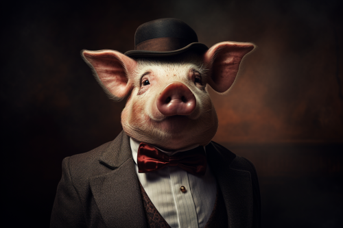 a very elegant pig, with a noculo, bow tie, mustache and bowler hat, realistic photo, high definition, 8k, --ar 3:2