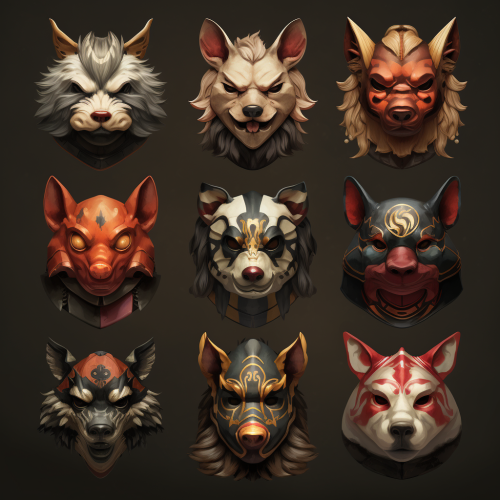 12 martial artists each wearing a chinese zodiac mask, rat mask, ox mask, tiger mask, rabbit mask, dragon mask, snake mask, horse mask, goat mask, monkey mask, rooster mask, dog mask, pig mask, hyungtae kim, illustration, high res