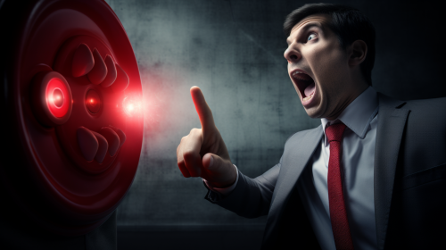 lunatic politicians yelling over a red button --ar 16:9