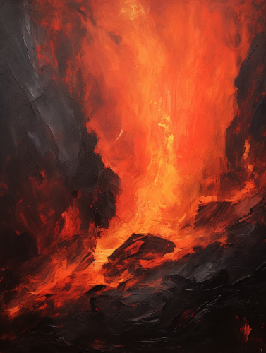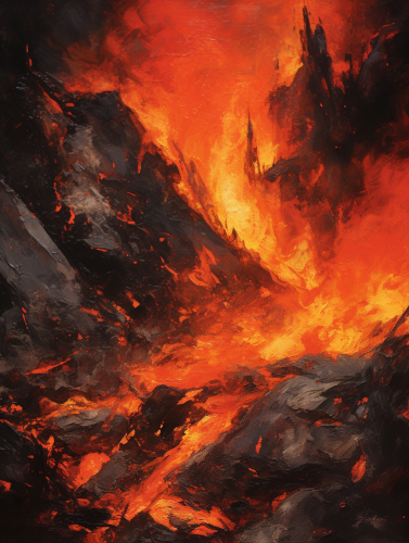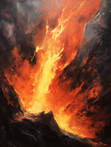 magma crafting,forge of mountain cavern,Bold brush stroke acrylic painting style , acrylic touch --ar 3:4