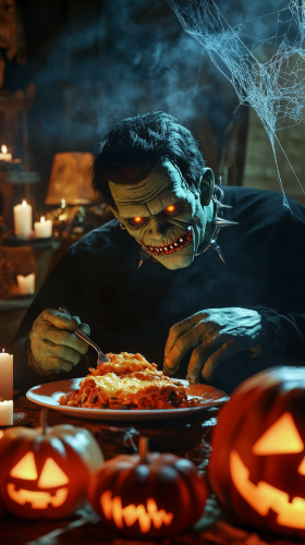 Visualize Spider-Man, fully suited with his mask still on, seated at a dining table. He's holding an entire round pizza with both hands, poised to take a big bite. The table is otherwise empty, focusing all attention on Spider-Man and his pizza. The setting is simple and homey, with kitchen details softly blurred in the background. This scene captures a light-hearted moment of Spider-Man enjoying a break in his superhero duties, indulging in a favorite food. --ar 9:16 --v 6.0