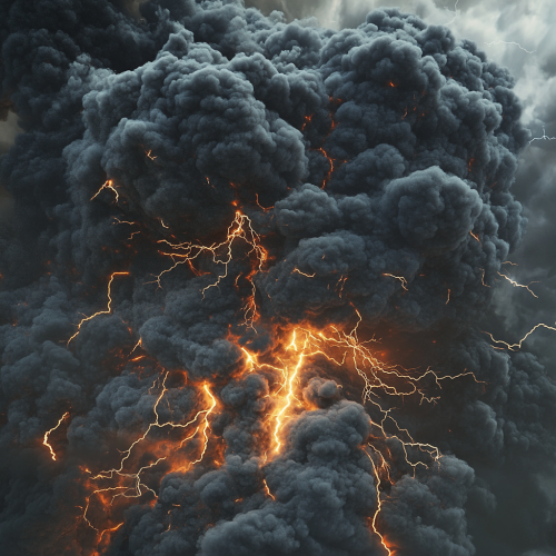photo realistic dark roiling clouds of smoke and electrical frisson, lighten bolts shoot off in every direction, clouds look like large black and gray cumulus clouds v6.1