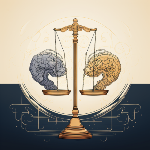 Design an image that encapsulates the relationship between Artificial Intelligence (AI), human cognition, and the balance of logic. Visualize a human brain and an electronic circuit (representing AI) side by side. Between them, place a balance or scale, symbolizing the equilibrium between the inherent 'proximity' approach of AI and logical reasoning. The brain should be detailed and intricate, emphasizing its complexity, while the AI circuit should appear advanced and sleek. The balance should be delicately poised, indicating the fragile equilibrium. The overall mood of the image should be one of contemplation and caution, highlighting the omnipresence of AI, its influence on human cognition, and the critical need for human oversight. Opt for a color palette that merges the organic tones of the human brain with the metallic and electric hues of AI.