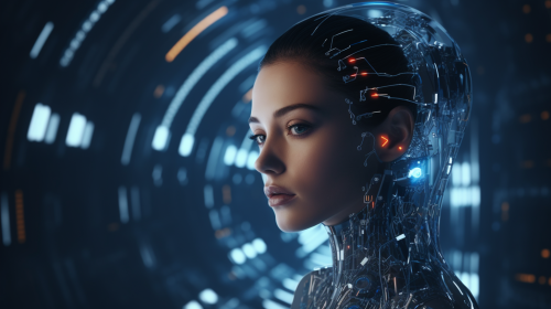 Futuristic cybersecurity agent in elegant uniform