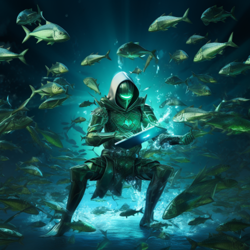 green and teal futuristic cybersecurity attack, spear fishing email files, virus, email envelopes