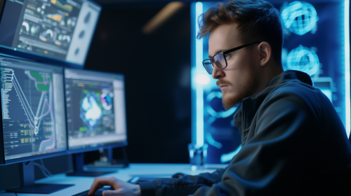 Medium Shot male cybersecurity expert --ar 16:9 --v 6.0 --s 50 --style raw