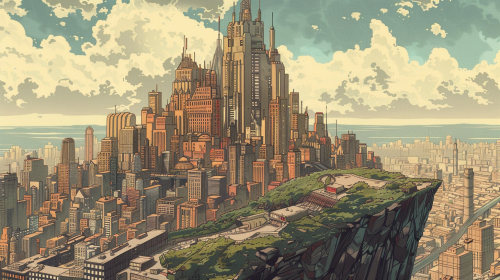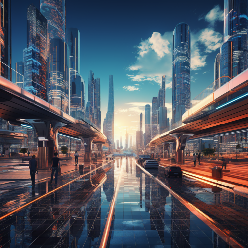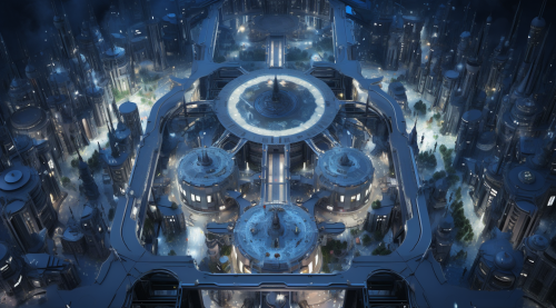 Create a futuristic city inspired by ancient Greece. Majestic white marble buildings with ionic columns rise into the sky, but with a sleek, futuristic twist. The Acropolis is transformed into a massive control hub with holographic projections of gods and myths. Flying vehicles pass over open-air theaters and forums, where citizens gather for both entertainment and digital discussions. The city’s streets are lined with futuristic statues of Greek gods, and the Parthenon is a high-tech center for wisdom and science, combining the elegance of Greek architecture with modern technology.