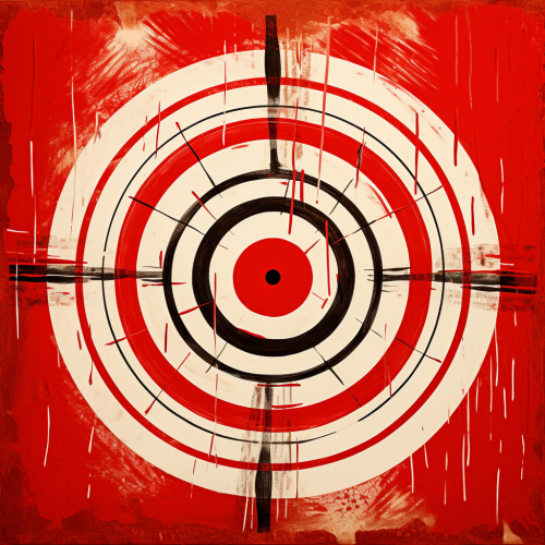 a red and white target that has a few arrows in the bulleye. make this have earthy undertones.