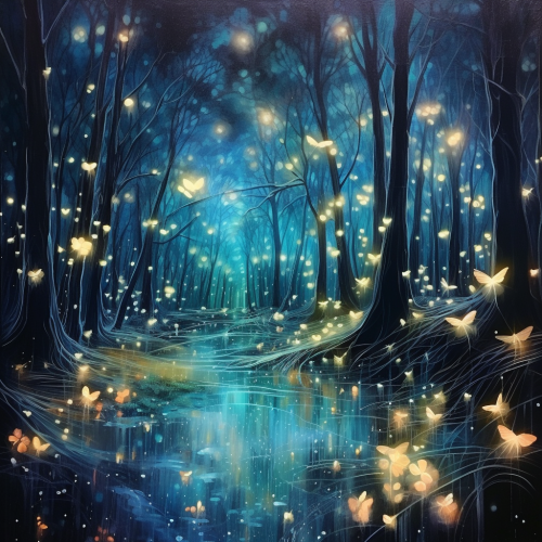 bioluminescence, magical, glimmering, shimmering, starlight, fairy lights, fireflies, Ethereal, feminine, light, airy, twinkling, cosmic, magical, vivid, bright --no people